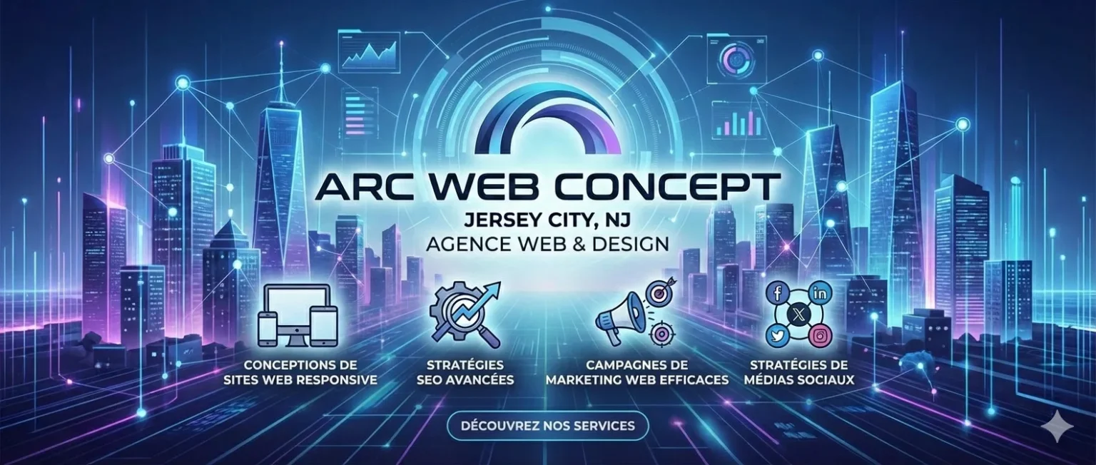 Bienvenue chez Arc Web Concept, située à Jersey City, New Jersey. Nous sommes une agence de conception de sites web et de marketing numérique à service complet, spécialisée dans la création de sites web qui génèrent du trafic, des leads et des ventes pour votre entreprise. Que vous ayez besoin d’un nouveau site web, d’une refonte ou que vous souhaitiez améliorer vos efforts de marketing numérique, nous avons tout ce qu’il vous faut. Notre équipe de designers et d’experts en marketing expérimentés travaillera en étroite collaboration avec vous pour créer une solution personnalisée répondant à vos besoins commerciaux uniques. Contactez-nous aujourd’hui pour découvrir comment nous pouvons aider votre entreprise à prospérer dans le monde numérique.